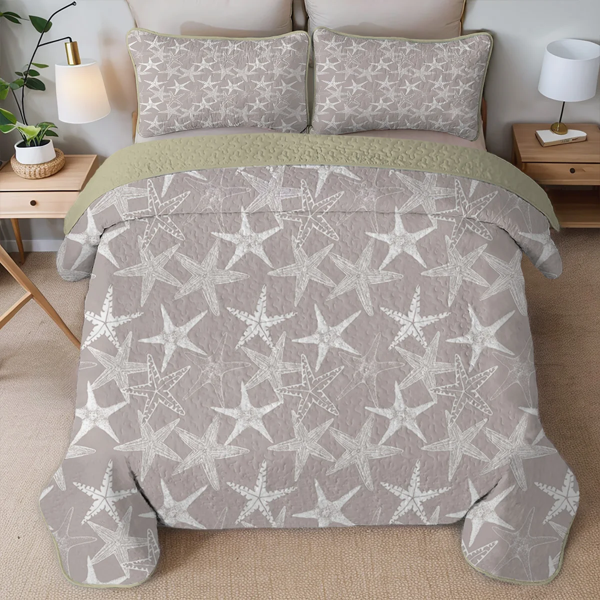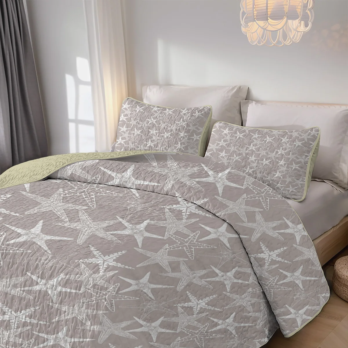 2/3-Pcs Chic Stars Printed Quilt Set, Cal King, Durable, Breathable, Unique Summer Bedding Set, 1 Quilt, 1/2 Pillowcase