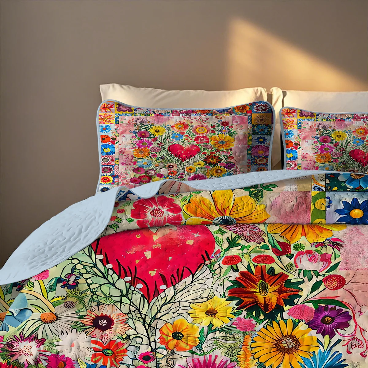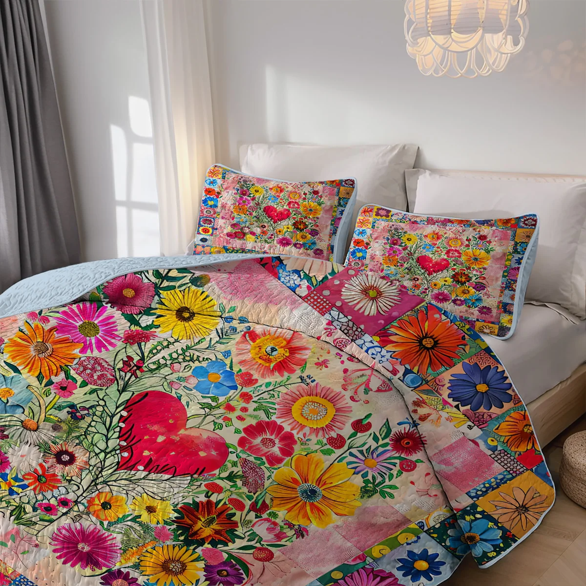 2/3-Pcs Floral Printed Quilt Set, Cal King, Durable, Breathable and Unique Summer Bedding Set, Including 1 Quilt, 1/2 Pillowcase