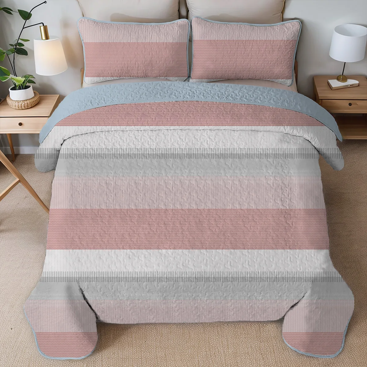 2/3-Piece Geometric Stripes Printed Quilt Set, Cal King, Durable, Breathable, Unique Summer Bedding Set, 1 Quilt, 1/2 Pillowcase