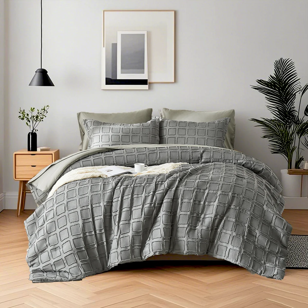 Solid color cut flower Comforter sets Queen,microfiber,light and breathable bedding,machine washable,suitable for all seasons