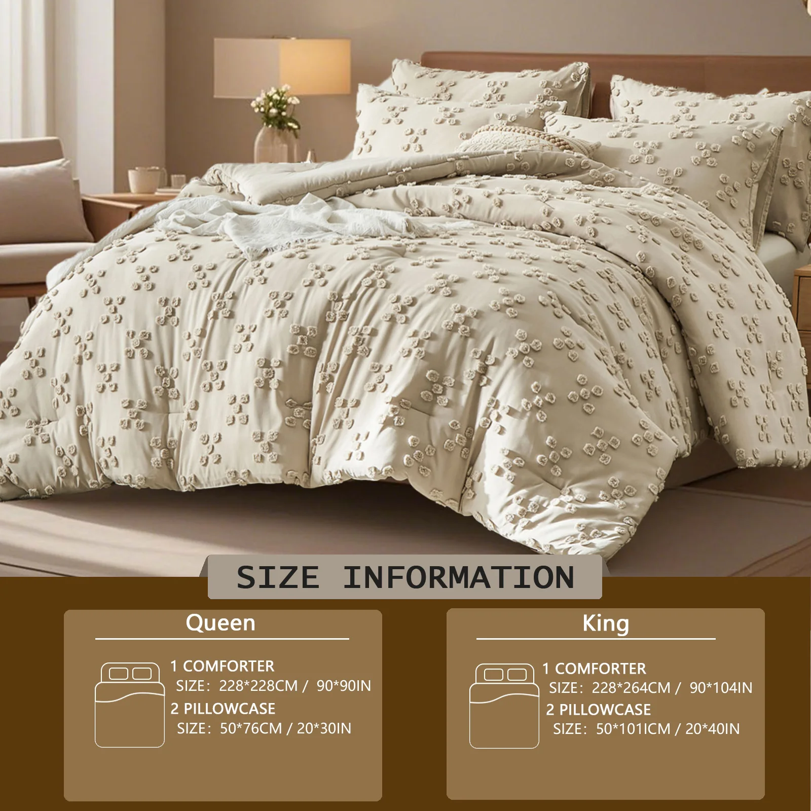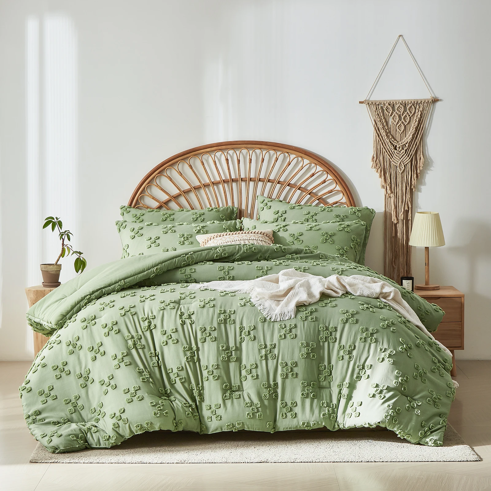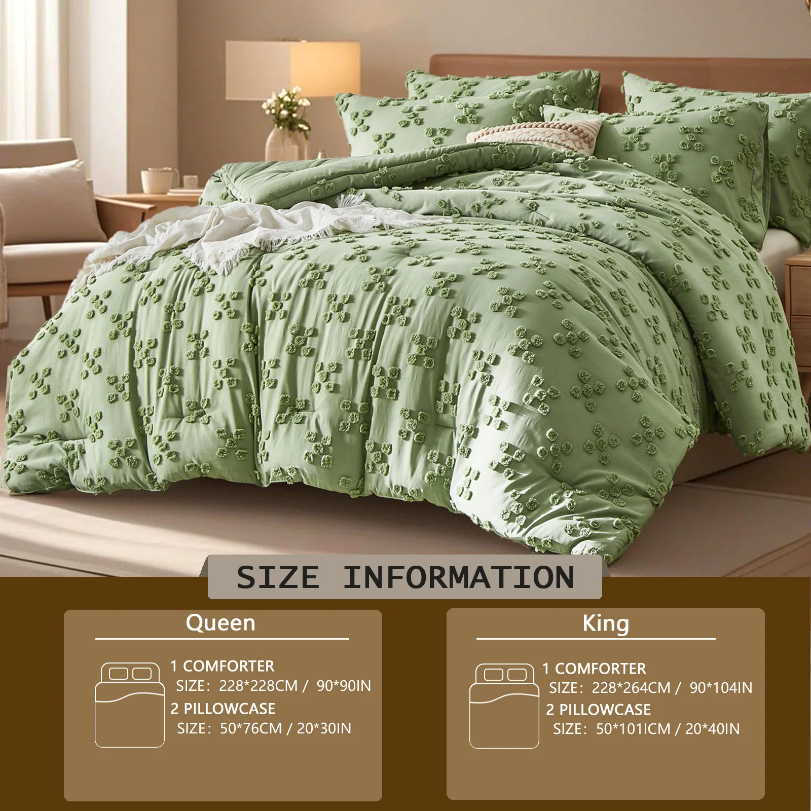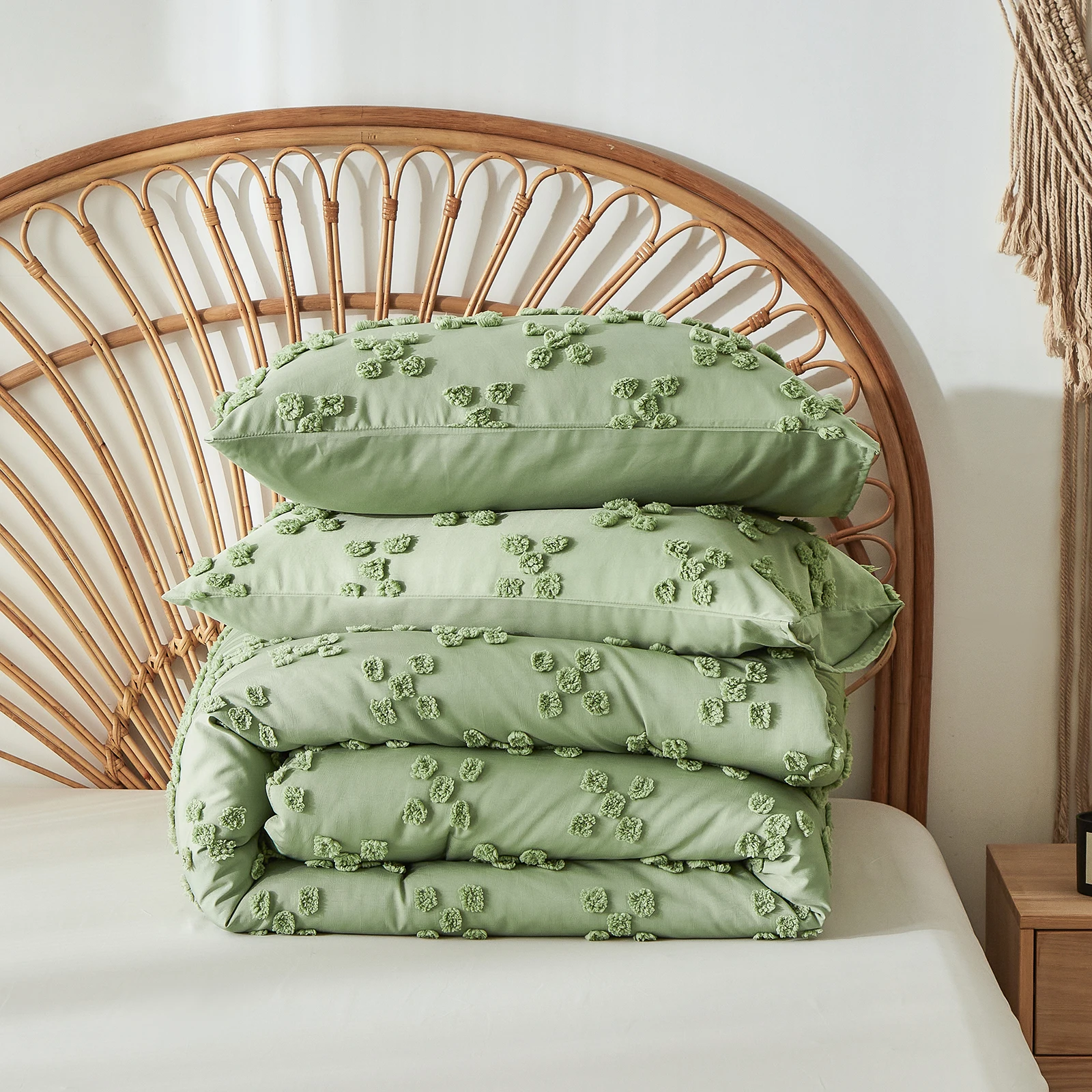 Solid color tufted bedding set, microfiber is lightweight and breathable, machine washable, queen/king size, all seasons