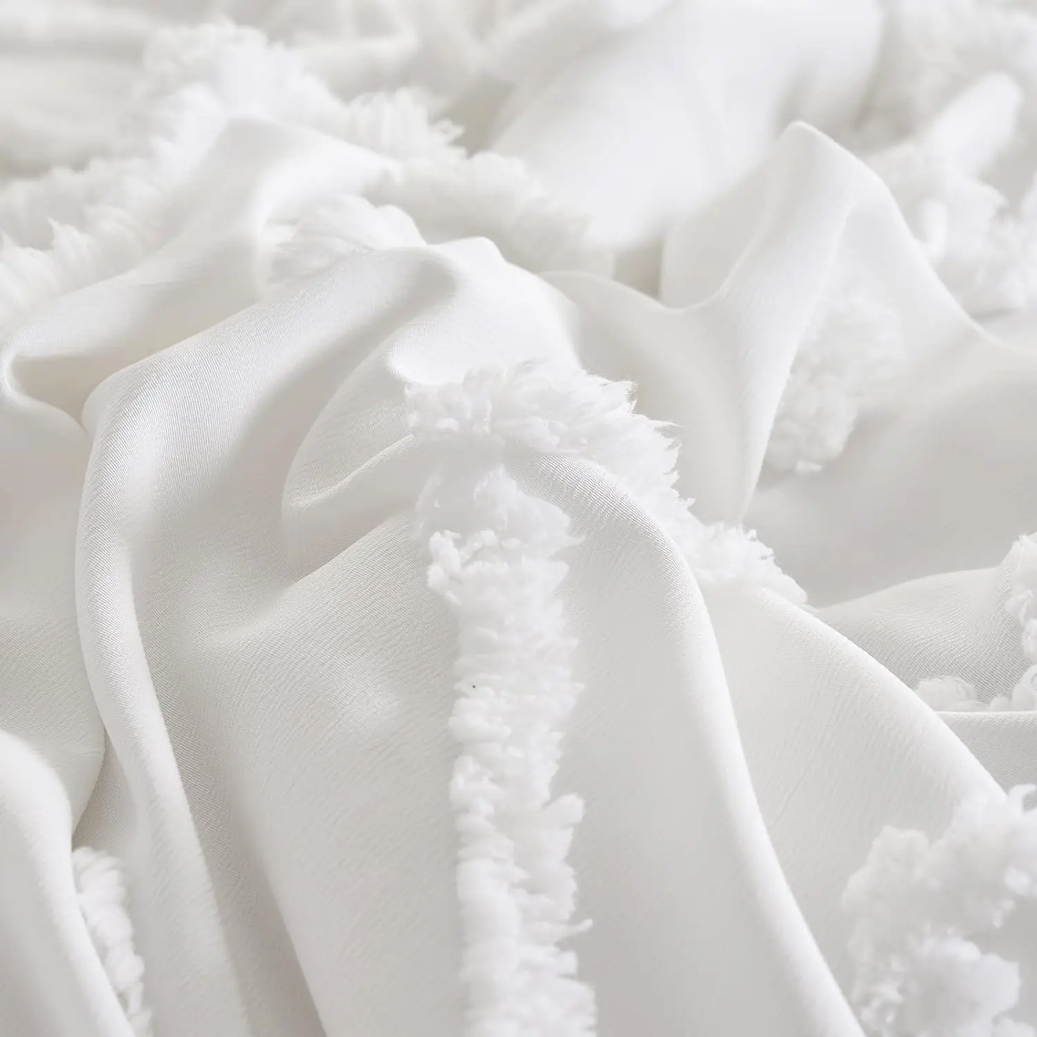 Tufted Boho Comforter Set – Farmhouse Shabby Chic Embroidery Bed Set, Soft Jacquard Comforter, Queen, King